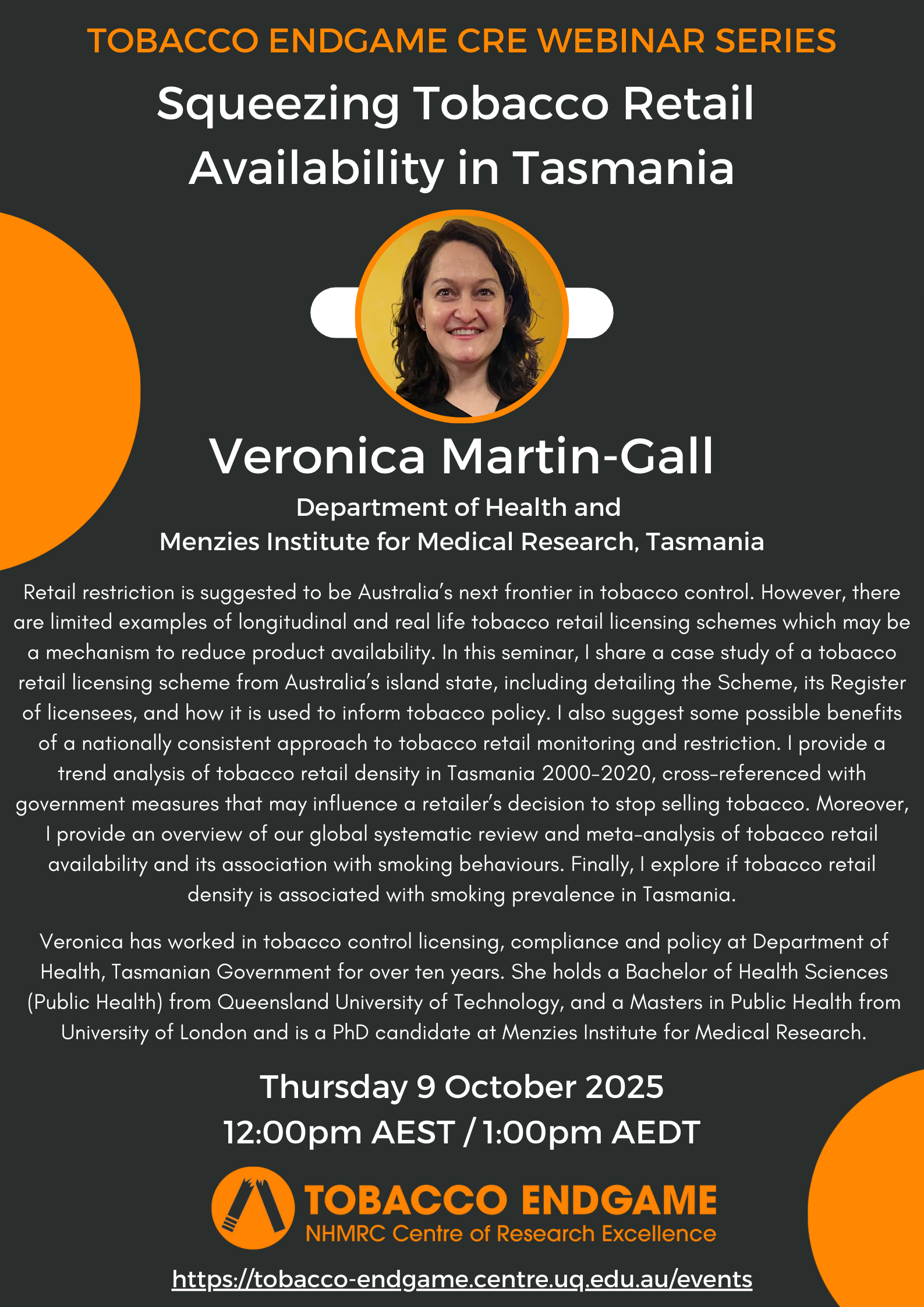 Veronica Martin-Gall presents 'Squeezing tobacco retail availability in Tasmania'